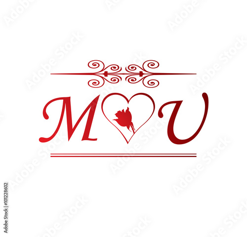 Mu Love Initial With Red Heart And Rose Stock Vector Adobe Stock
